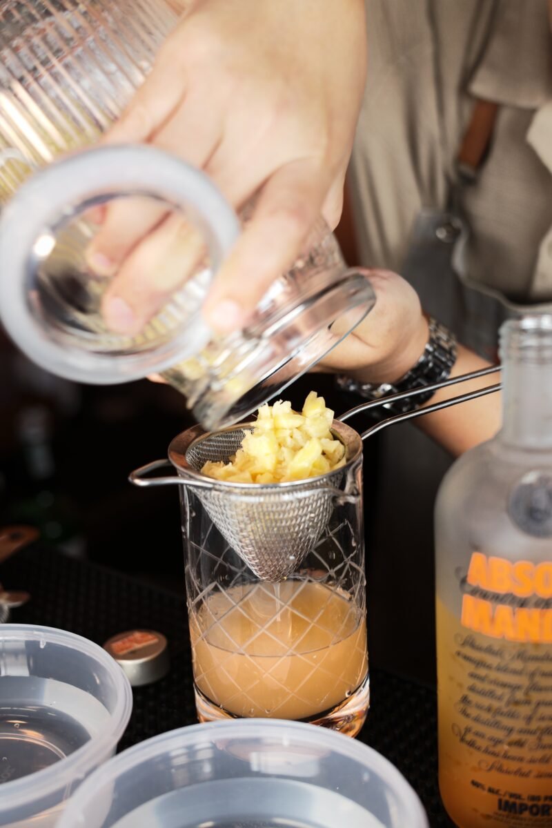 ค็อกเทลแก้วมีการนำเมนูระดับโลกอย่าง Moscow Mule มาตีความใหม่ ซึ่งมีส่วนผสมหลักเป็นขิง ให้ความเผ็ดร้อนในแบบไทย รสชาติอร่อย มีกลิ่นที่ซับซ้อน และมีสีทองราวกับแสงสะท้อนของพระปรางค์วัดอรุณในยามค่ำคืน และเปรียนเสมือนความเรืองรองแห่งกรุงรัตนโกสินทร์