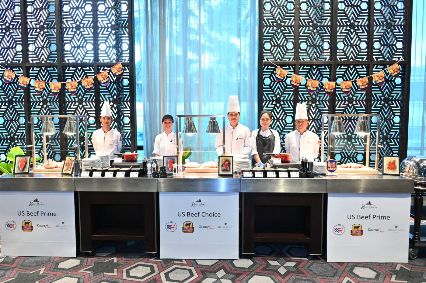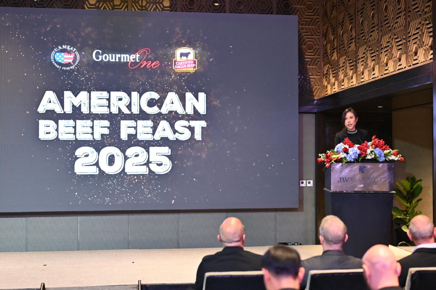 งานเปิดตัว “เทศกาลเนื้อวัวอเมริกัน | American Beef Feast 2025” จัดขึ้นที่โรงแรม เจดับบลิว แมริออท กรุงเทพฯ โดยได้รับเกียรติจากผู้แทนจากสหพันธ์ผู้ส่งออกเนื้อสัตว์แห่งสหรัฐอเมริกา (USMEF) และแบรนด์ Certified Angus Beef (CAB) มาร่วมงาน พร้อมมอบเครื่องหมาย “American Beef Feast 2025” ให้โรงแรมและร้านอาหารชั้นนำที่เข้าร่วมแคมเปญนี้ ในงานยังมีการสาธิตการปรุงอาหารพร้อมเมนูอาหารที่ปรุงจากจากเนื้อวัวอเมริกันเกรดพรีเมี่ยมทั้ง 3 แบรนด์ รังสรรค์โดยเชฟเควิน ทอมสัน เชฟใหญ่ประจำโรงแรมเจดับบลิว แมริออท กรุงเทพฯ และห้องอาหารนิวยอร์ก สเต๊กเฮาส์