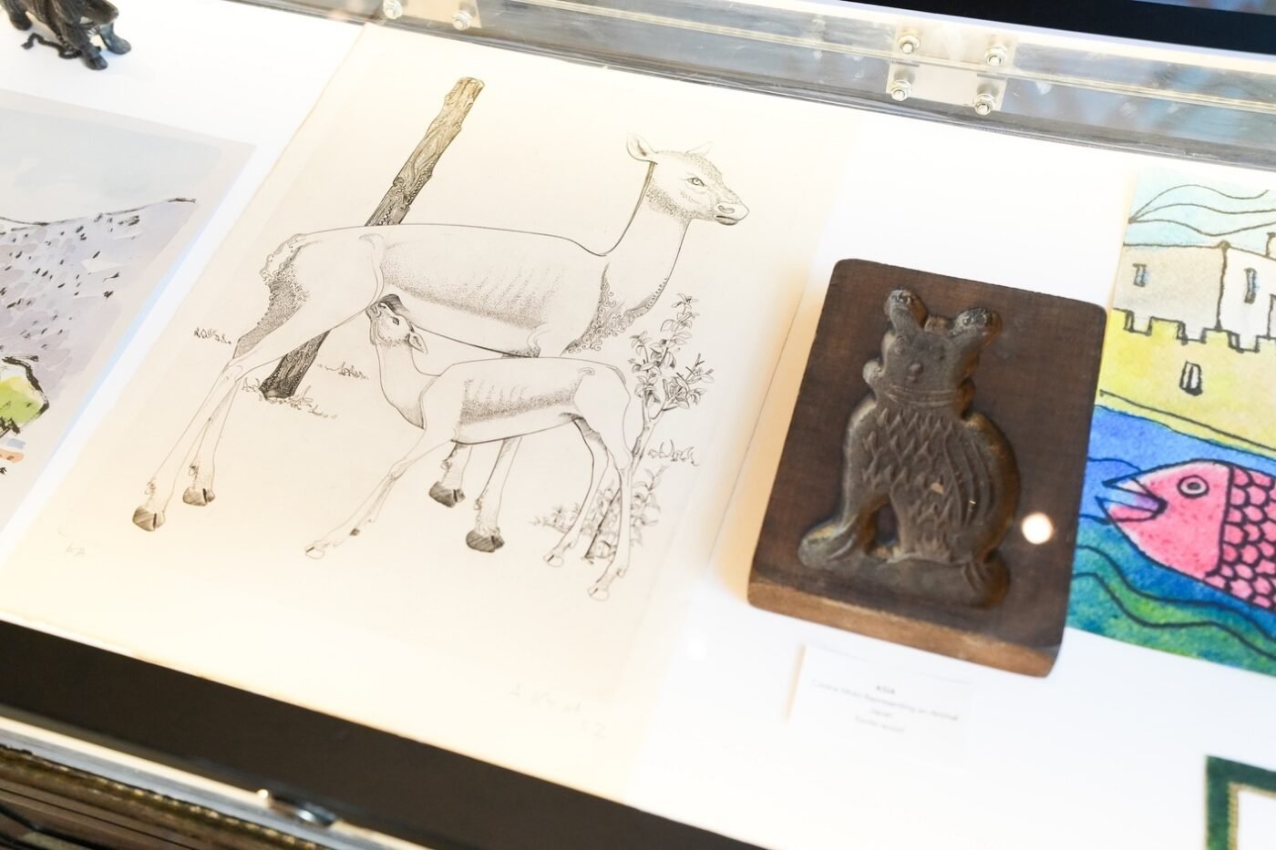 - ผลงานชิ้นเอกจากทั้งในยุคประวัติศาสตร์สมัยใหม่และร่วมสมัย รวมถึงภาพพิมพ์กัดกรด (etchings) โดย ปาโบล ปิกัสโซ (Pablo Picasso) และ โจน มิโร (Joan Miró), ภาพพิมพ์โดย มาร์ก ชากาล (Marc Chagall) และภาพวาดต้นฉบับโดยราอูล ดูฟี (Raoul Dufy)