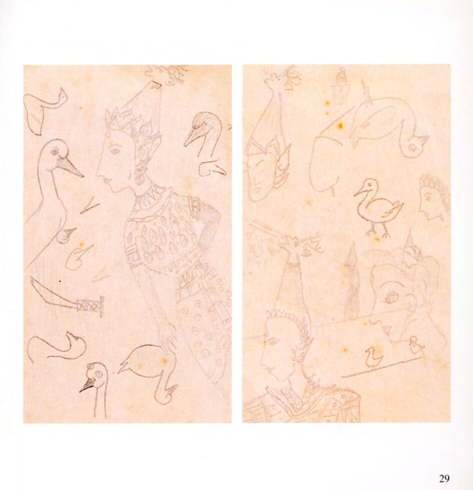 ต่อมา เมื่อซ่อมหุ่นวังหลวง ในปีพ.ศ. ๒๕๒๖ “พระพรต” ให้สวมผ้าสีม่วงแทนที่ผ้าสีเขียว ท่านเปรียบเปรยและตั้งคำถามว่า คนเรามีผ้านุ่งหลายชุด ทำไม พระพรตต้องนุ่งผ้าเขียวสีเดียวเท่านั้น จะนุ่งสีอื่นไม่ได้หรือ ? และอาจจะเป็นได้ว่า ละครสมัยก่อน การตระเตรียมไว้หลายชุด อาจสิ้นเปลืองงบประมาณก็เป็นได้ !