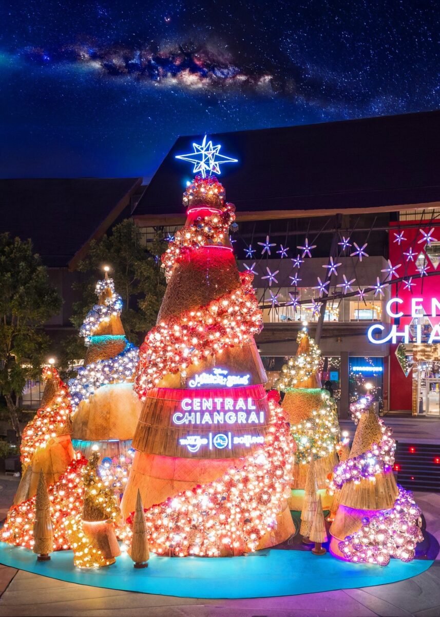 1. ต้นคริสต์มาสหมอกพันวา :  เป็นการจับมือระหว่าง เซ็นทรัล เชียงราย และ ‘ดอยตุง’ เพื่อสร้างปรากฏการณ์งานคราฟต์มาสเตอร์พีซหนึ่งเดียวในไทย เนรมิตต้นคริสต์มาสไม้ไผ่สาน ขนาดสูง 15 เมตร และรายล้อมด้วย 6 ต้นคริสต์มาส ในคอนเซ็ปต์ ‘The Magic of Chiang Rai’ ถ่ายทอดเสน่ห์แห่งล้านนาและอัตลักษณ์ของ 4 ชนเผ่าจากยอดดอยสูง ที่สืบทอดมาอย่างยาวนาน ผสมผสานเป็นงานคราฟต์ โดยใช้วัสดุไม้ไผ่สานย้อมสีธรรมชาติ ตกแต่งด้วยเครื่องประดับ ลูกปัด และงานหัตถกรรมท้องถิ่น ผสานกับแสงไฟ LED ที่ระยิบระยับหลากสีสัน ที่พร้อมส่งต่อความภาคภูมิใจสู่หัวใจคนทั่วโลก