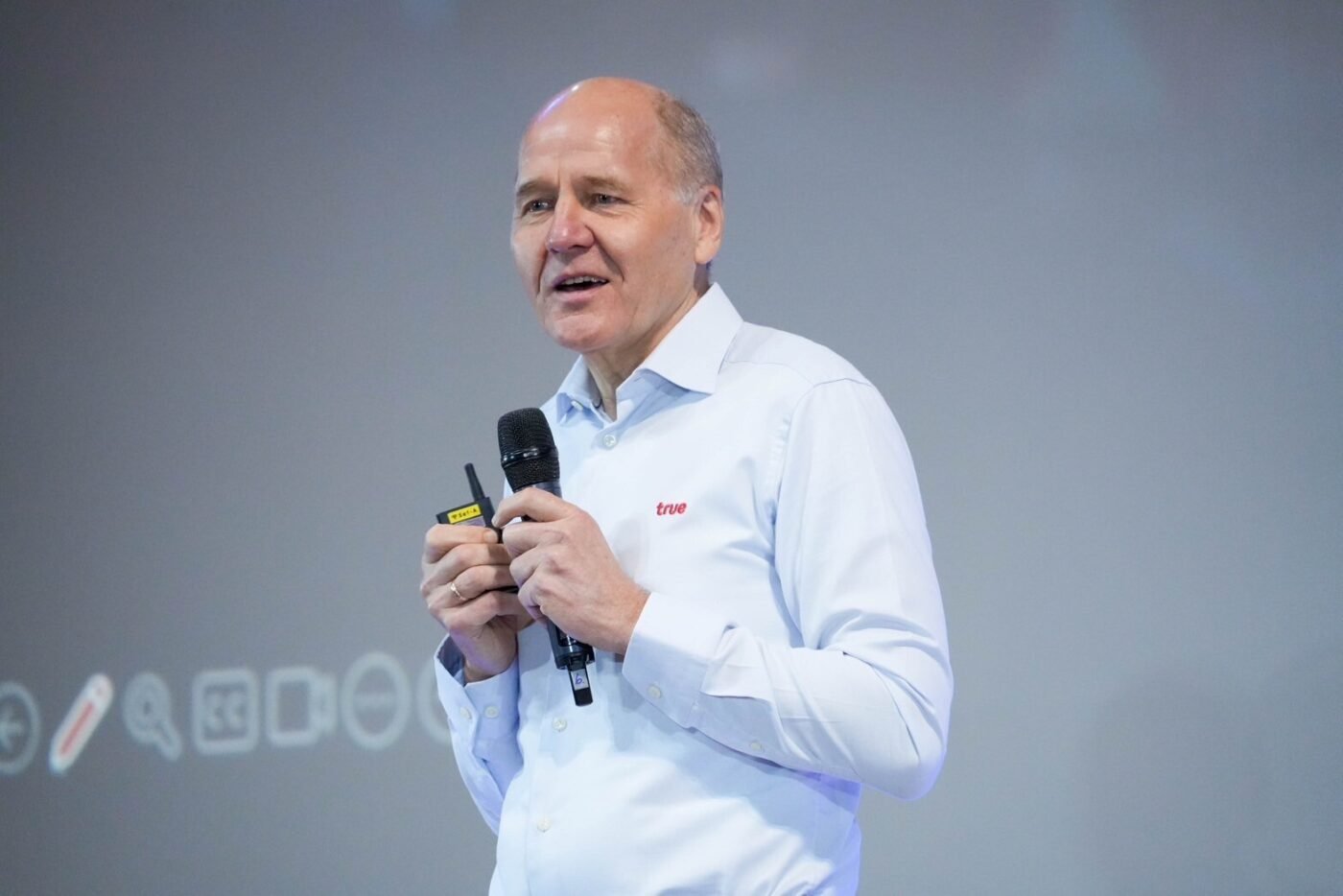 มร.ซิกเว่ เบรกเก้ ประธานคณะผู้บริหารกลุ่ม บริษัท ทรู คอร์ปอเรชั่น จำกัด (มหาชน) ถ่ายทอดวิสัยทัศน์เรื่อง “การใช้ข้อมูลอย่างมีความรับผิดชอบ เพื่อขับเคลื่อนความยั่งยืน สังคม และธรรมาภิบาล” โดยระบุว่า “ข้อมูลและเทคโนโลยีไม่เพียงเป็นเครื่องมือทางธุรกิจ แต่ยังสามารถสร้างคุณูปการต่อโลกและผู้คนได้อย่างลึกซึ้ง ภายใต้แนวคิด “Data for a Greener Planet” โดยกลุ่มทรูเดินหน้าเปลี่ยนผ่านสู่พลังงานสะอาด จากการติดตั้งแผงโซลาร์เซลล์บนเสาสัญญาณกว่า 10,000 แห่งทั่วประเทศ ควบคู่การใช้ AI เพื่อบริหารจัดการพลังงานอย่างชาญฉลาด ช่วยลดการใช้พลังงานได้สูงสุดถึงครึ่งหนึ่ง และลดการปล่อยคาร์บอนลงได้กว่า 14,000 ตันต่อปี พร้อมตั้งเป้าหมายสู่การเป็นองค์กร Carbon Neutral ในปี 2030 และ Net Zero ภายในปี 2050”