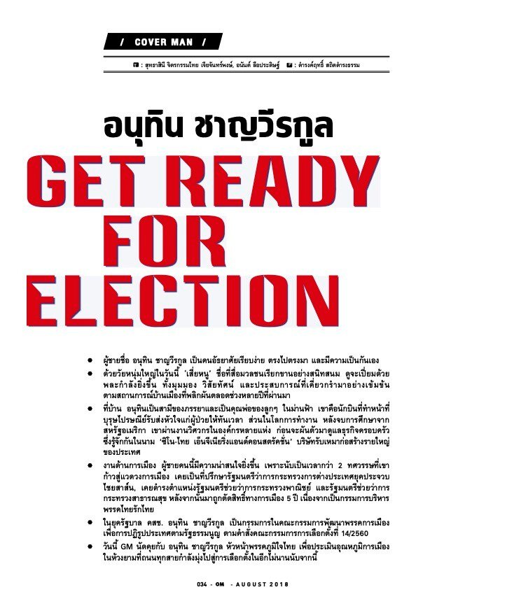 Get Ready for Election: ย้อนรอยบทความสัมภาษณ์ ‘อนุทิน ชาญวีรกุล’ จากวันแรก สู่ตำแหน่งนายกรัฐมนตรี