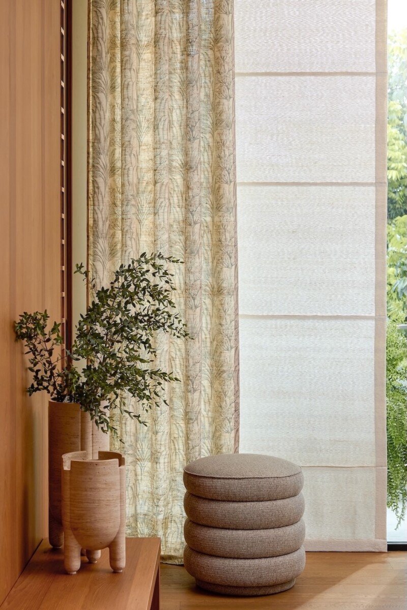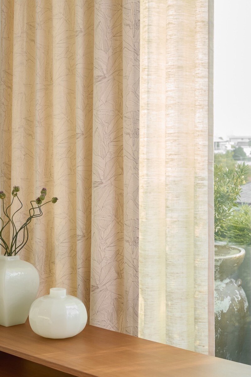 มาต่อที่ซีรีส์ Flora & Fauna ภูมิทัศน์อันงดงามตามธรรมชาติผ่านผ้าทอที่มีผิวสัมผัสเป็นเอกลักษณ์ งานปักที่เปี่ยมชีวิตชีวา ลวดลายทรอปิคัล และลายปรินต์แสนประณีตบรรจง ผ้าทอที่มีผิวสัมผัสหลากหลายช่วยเติมความเป็นธรรมชาติให้สเปซ ส่วนลวดลายเรขาคณิตจากธรรมชาติในซีรีส์นี้ มีการเสริมลูกเล่นในการตกแต่งพื้นที่ได้อย่างน่าสนใจ โดยลายไฮไลต์ ได้แก่ Ora Shadow ลายพิมพ์ออมเบรไล่สีแสนนุ่มนวลบนผ้าลินิน 100% พร้อมหน้ากว้างเป็นพิเศษและความโปร่งแสงที่ช่วยสร้างบรรยากาศอบอุ่นจากแสงที่ลอดผ่านเข้ามาในห้อง ส่วนลายKerala Embroidery เป็นการอวดความพิเศษของลวดลายดอกไม้ปักมือหลากสีสันบนลินินธรรมชาติ
