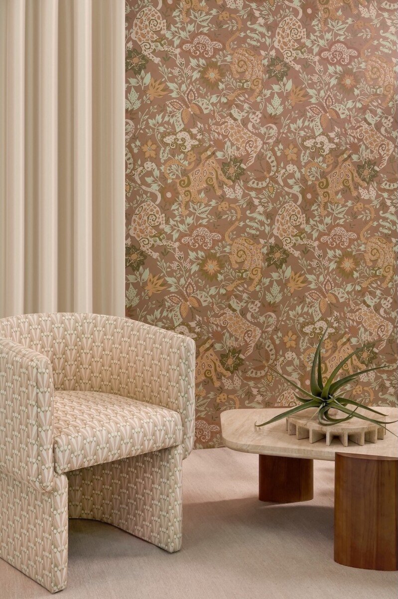 และใครที่ชื่นชอบวอลเปเปอร์ละก็ต้องไม่พลาดซีรีส์วอลเปเปอร์ Terra Reverie Wallcovering ที่นำเสนอลวดลายสุดไอคอนิก ซึ่งมีการตีความใหม่จากอาร์ไคฟ์ของแบรนด์จิม ทอมป์สัน พิมพ์ลงบนวัสดุที่ทอจากเส้นใยธรรมชาติ เช่น หญ้าหรือป่าน อาทิ Tiger’s Dream, Pineapple, Palm Leaves, Lush Leafscape และ Royal Fern เพื่อสร้างบรรยากาศที่โดดเด่นไม่ซ้ำใครให้แก่ทุกห้อง
