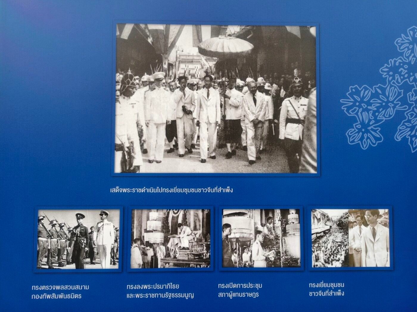 และอีกหนึ่งเหตุการณ์ที่ยังคงอยู่ในความทรงจำของทั้งคนจีนและคนไทยเชื้อสายจีนย่านสำเพ็งได้เป็นอย่างดี เพราะในช่วงเวลานั้นฝ่ายคนจีนที่โดนกดขี่ข่มเหงจากทางการในสมัยจอมพลป. พิบูลสงคราม ลันเกล้าฯ รัชกาลที่ ๘ ทรงตะหนักในความขัดแย้งนี้ จึงเสด็จเยือนสำเพ็ง พร้อมพระอนุชา เมื่อวันที่ ๓ มิถุนายน พ.ศ. ๒๔๘๙ การเสด็จในครั้งนั้นใช้เวลาเพียง ๔ ชั่วโมง พระราชกรณียกิจทุกอย่างประสบความสำเร็จอย่างงดงาม ทรงเอาใจใส่ และสนทนาเป็นกันเองกับชาวจีน ทำให้ความตึงเครียดลดลง เกิดความสมานฉันท์ในหมู่คนจีนกับคนไทยภายใต้พระบรมโพธิสมภาร