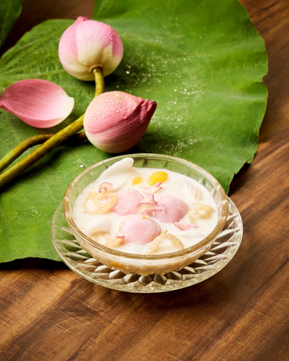 และพลาดไม่ได้กับ บัวรวมมิตรพร้าวอ่อน ขนมไทยรสละมุนที่รวมวัตถุดิบจากบัว ทั้งเม็ดบัว รากบัว และงาดำ ราดด้วยมะพร้าวอ่อนในน้ำ เชื่อมหอมหวาน