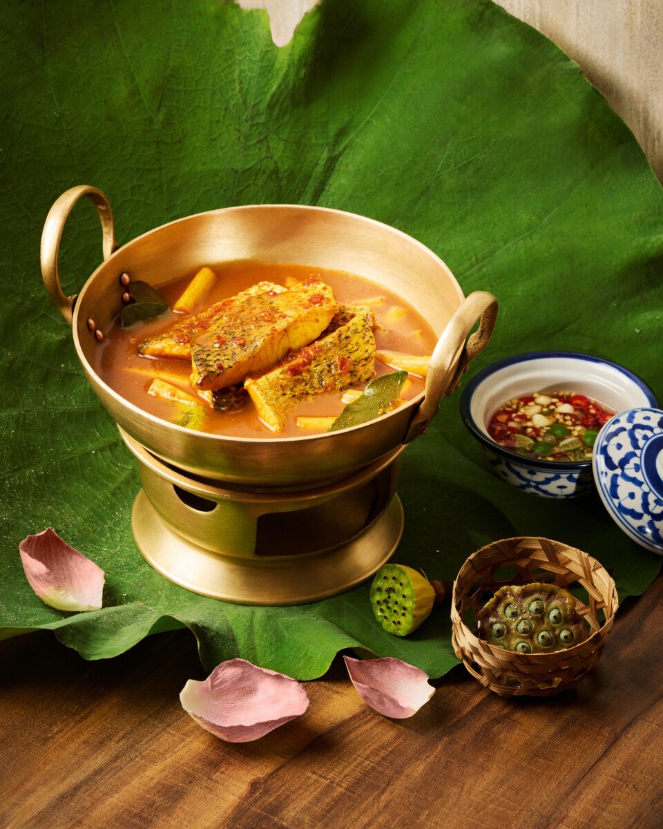 แกงส้มไหลบัวปลากระพงทอง : เมนูรสแซ่บสไตล์ไทยแท้ ที่ผสานความกรอบนุ่มของไหลบัวกับความหวานละมุนของเนื้อปลากะพงทอง รสเปรี้ยวเผ็ดเข้มข้น