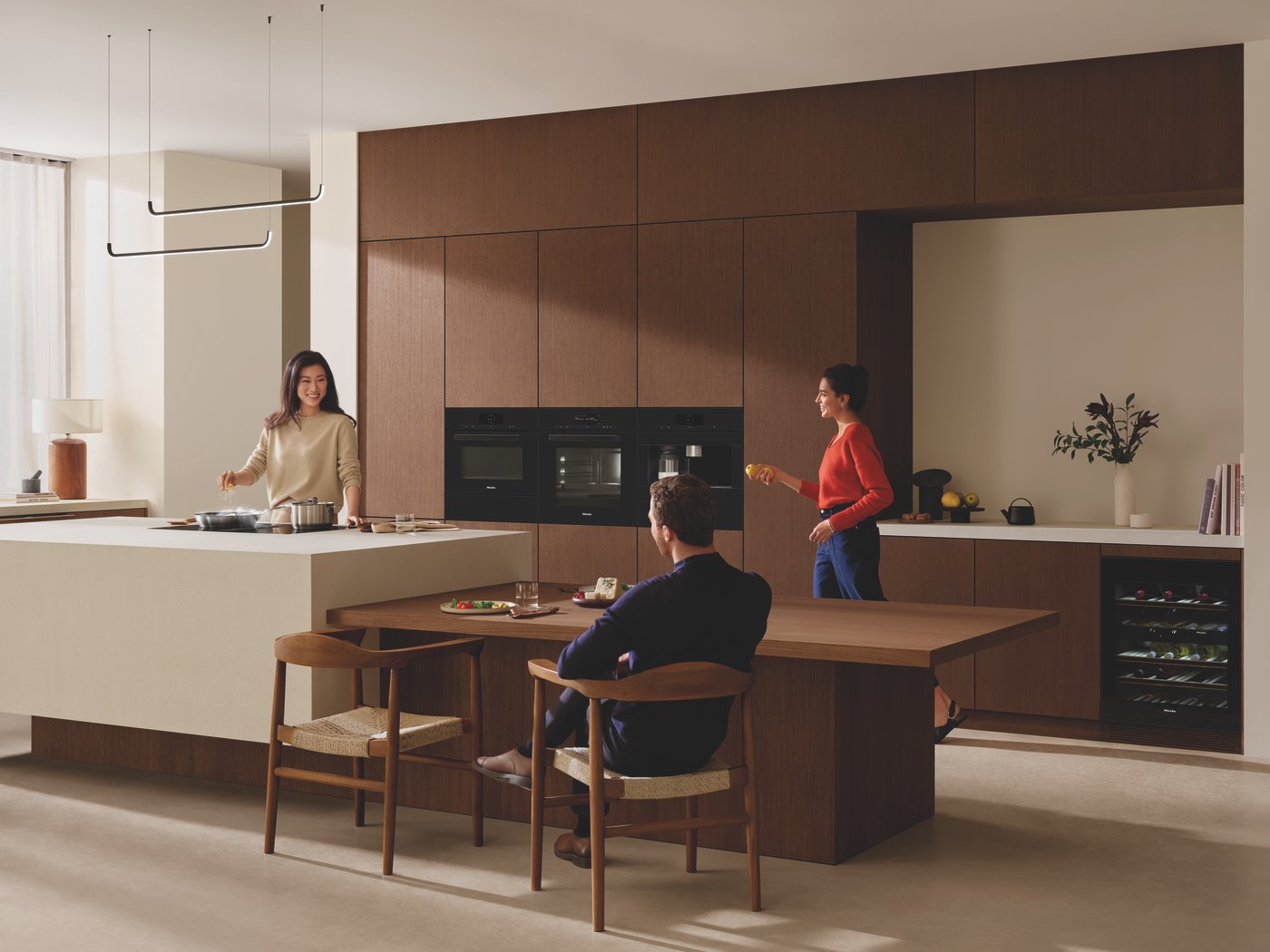 ไฮไลท์ของงานอยู่ที่การมาเยือนของเชฟแฝดชื่อดังดีกรี 3 ดาวมิชลินอย่าง โธมัส และ แมทธิอัส ซูห์ริง ในฐานะFriend of Miele ที่มาร่วมถ่ายทอดประสบการณ์พร้อมรังสรรค์เมนูอาหารคาวสุดพิเศษแบบ Live Cooking ให้ได้ชมกันอย่างใกล้ชิด ผ่านเครื่องครัวของ Miele จากนั้นเปลี่ยนมู้ดมาสัมผัสบรรยากาศวิวเมืองยามค่ำคืนบริเวณเอาท์ดอร์รูฟท็อปของ Miele Lounge เพื่อดื่มด่ำกับขนมหวานที่รังสรรค์อย่างประณีตโดย École Ducasse Nai Lert Bangkok Studio สถาบันศิลปะการทำอาหารระดับโลกที่สืบทอดปรัชญาและความเป็นเลิศด้านขนมหวานแบบฝรั่งเศส ภายใต้การก่อตั้งของเชฟระดับตำนาน Alain Ducasseที่ถ่ายทอดความพิถีพิถัน ความสมดุลของรสชาติ และความงดงามในทุกรายละเอียด เติมเต็มบรรยากาศค่ำคืนแห่งการเฉลิมฉลองให้สมบูรณ์แบบยิ่งขึ้นด้วยค็อกเทลซิกเนเจอร์จาก ฟิลิป บิชอป มิกโซโลจิสต์ชื่อดังจาก BKK Social Club โรงแรมโฟร์ซีซั่นส์ กรุงเทพฯ ซึ่งได้รับรางวัลหนึ่งใน World’s 50 Best Bars สะท้อนรสนิยมและมาตรฐานระดับโลกที่ Miele ให้ความสำคัญ