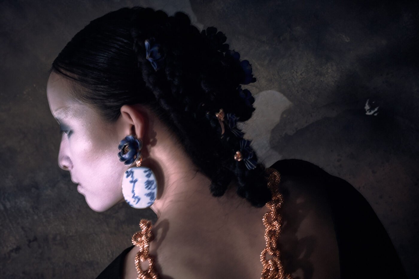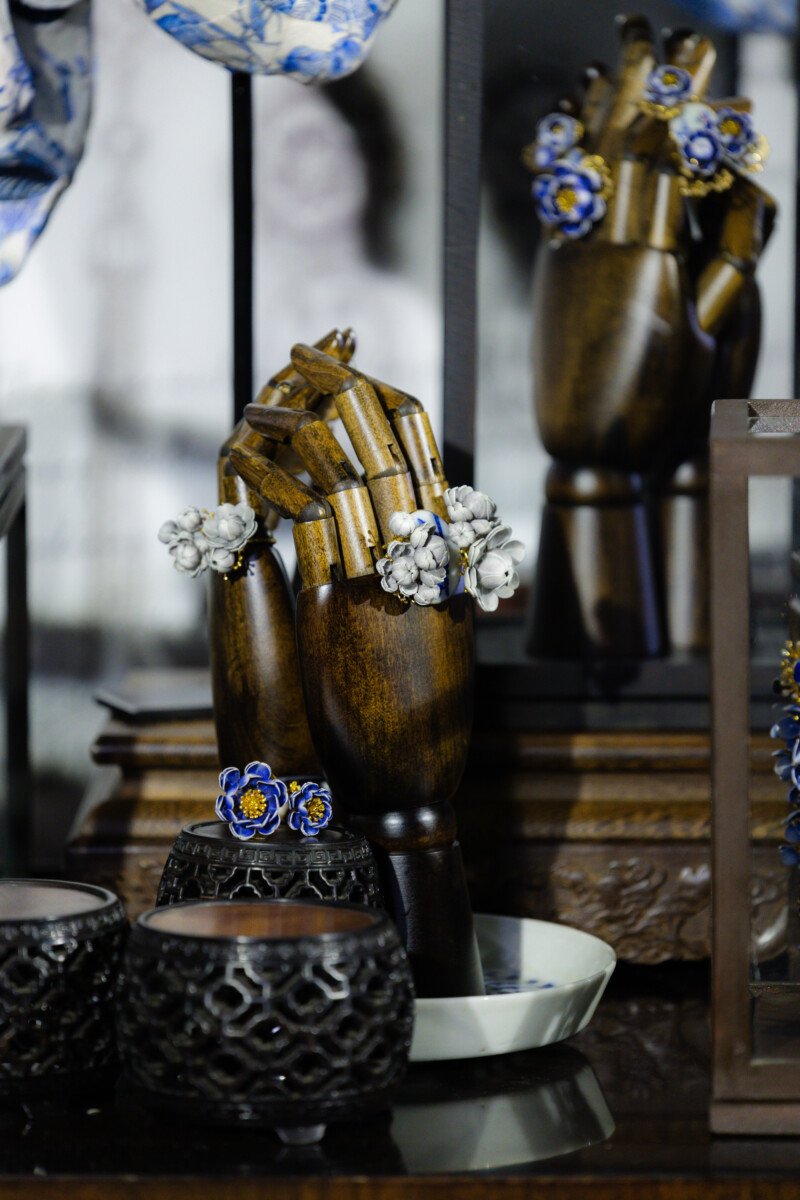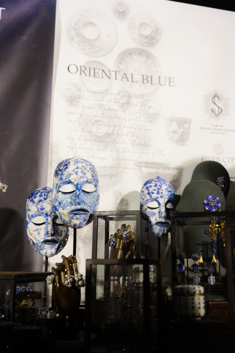 “Oriental Blue” ได้ตีความใหม่ของความผูกพันระหว่างธรรมชาติ ศิลปะ และความเชื่อ ผ่านการใช้ เซรามิกสีน้ำเงิน–ขาว ที่ครั้งหนึ่งเคยเป็นภาชนะล้ำค่าในอดีต หลอมรวมเข้ากับเฉด Midnight Blue (Siam รัตติกาล) ของเครื่องเคลือบลายคราม กลายเป็นเครื่องประดับร่วมสมัยที่ไม่เพียงสะท้อนความงาม หากยังบรรจุปรัชญาแห่ง “การซ่อมแซม” หรือ “Kintsugi” ไว้ในตัว