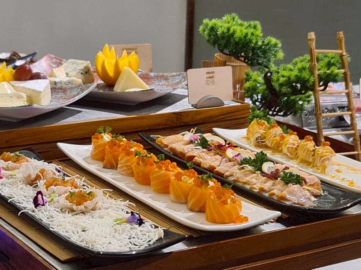 และความอร่อยนี้ไม่ได้มีเพียงเมนูเนื้อให้ได้เพลิดเพลินในการรับประทานเท่านั้น ยังมีมุมเมนูซีฟู้ด ,ซูชิ ,โคลด์คัท, สลัดบาร์, ซุป, ชีสนานาชนิด รวมทั้งของหวานทั้งขนมไทย ขนมอบ เค้กหน้าต่างๆ ไอศกรีม น้ำแข็งใส ผลไม้ตามฤดูกาล ให้เลือกอิ่มอร่อยตั้งแต่ 18.00 น -22.00 น.