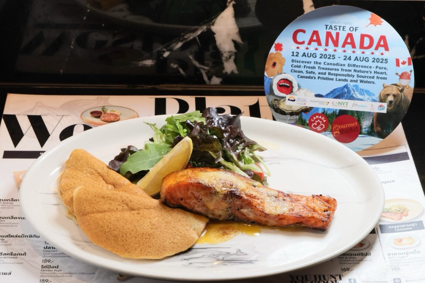 ในส่วนเคาน์เตอร์ You Hunt We Cook พร้อมเสิร์ฟเมนู “แพนเค้กแป้งควินัว เสิร์ฟพร้อมแซลมอนย่าง ราดซอสเบอร์เนส (Béarnaise)” หอมมัน เสริมด้วยมิกซ์สลัดสดกรอบ ราดน้ำสลัดบัลซามิกหอมหวาน ช่วยตัดเลี่ยนและเพิ่มความสดชื่นในทุกคำ ลิ้มลองรสชาติแห่งแคนาดาจากวัตถุดิบและสินค้าคุณภาพในงาน “Taste of Canada 2025” ได้ตั้งแต่วันนี้ – 24 สิงหาคม 2568 ที่ กูร์เมต์ มาร์เก็ต สาขาพารากอน ดีพาร์ทเม้นท์สโตร์, เอ็มโพเรียม, เอ็มควอเทียร์ และเอ็มสเฟียร์ รายละเอียดเพิ่มเติมได้ที่ Facebook: Gourmet Market Thailand และ IG: gourmetmarket