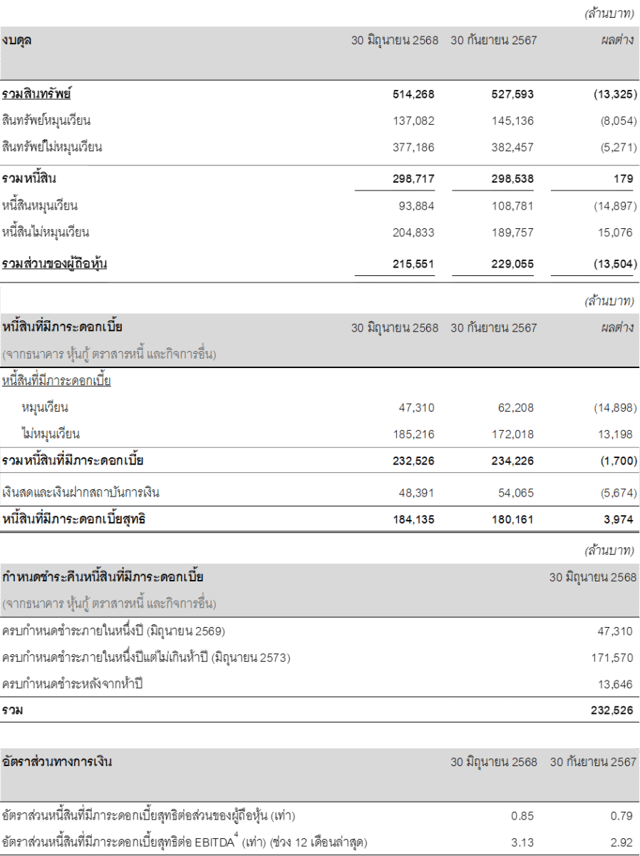 ผลการดำเนินงานสำหรับงวด 9 เดือน สิ้นสุดวันที่ 30 มิถุนายน 2568 ที่ยังไม่ได้รับการตรวจสอบ