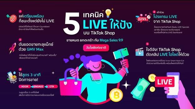 พร้อมกันนี้ TikTok Shop ยังได้เผย 5 เคล็ดลับ ที่จะช่วยให้คุณเปลี่ยนทุก LIVE เป็นยอดขายจริง และสร้างโอกาสใหม่ในช่วงเวลาทองแห่งปีนี้