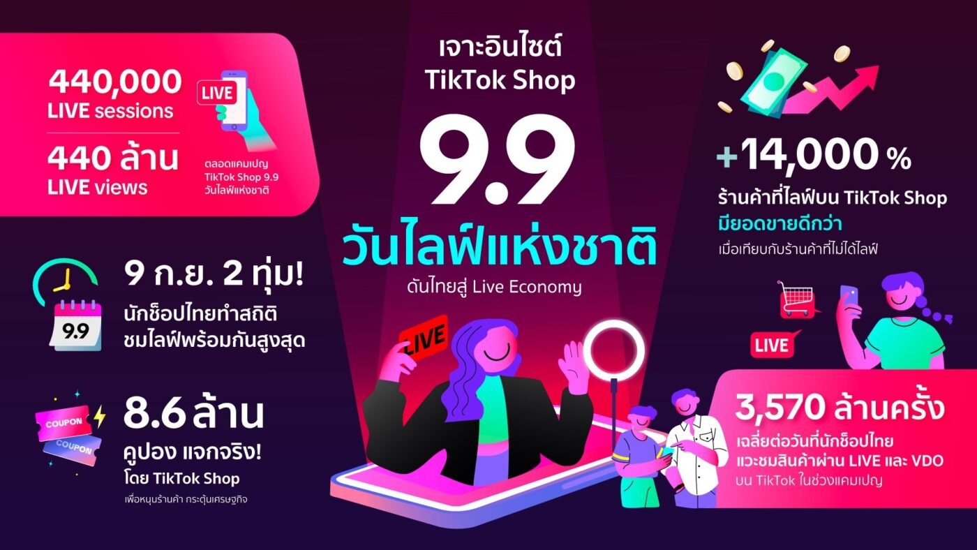 - แคมเปญ TikTok Shop 9.9 ดึงดูดยอดชมไลฟ์มากกว่า 440 ล้านวิว เปลี่ยนการมีส่วนร่วมในไลฟ์เป็นยอดขายที่วัดผลได้